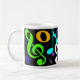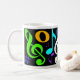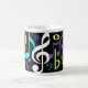 La tasse de café de notes musicales comporte une bande des notes musicales colorées enveloppant la tasse