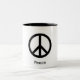 La tasse de café avec une image d'un signe de paix et indique la paix sous le signe de paix