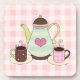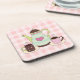Dessous de verre à carreaux rose et blanc, avec de jolies illustrations de deux tasses de café et une cafetière colorée. Super dessous de verre pour n'importe quelle pièce de la maison. Personnalisez pour ajouter le texte de votre choix. Idée cadeau géniale.