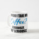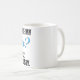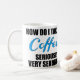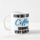 Tasse de café mignonne qui indique "comment I prennent mon café sérieusement très au sérieux" en texte noir et bleu-clair.