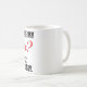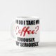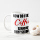 Tasse de café mignonne qui indique "comment I prennent mon café sérieusement très au sérieux" en texte noir et rouge.
