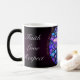 Cette tasse de café est décorée de ma peinture d'une pierre de quartz. Elle a également les mots : Foi, amour, et respect écrit là-dessus.