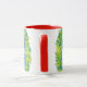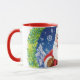 La tasse faite sur commande, le Père Noël et le jouet de Noël renvoient. 2 rouges de ton.