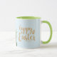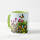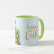 Cette tasse à boisson chaude de style vacances présente un design classique de lapin de Pâques. Il y a également des œufs de Pâques colorés cachés dans l'herbe du jardin et les fleurs printanières. Sur le côté opposé se trouve une salutation de Joyeuses Pâques en glitter doré. Cette tasse combo avec une poignée et un intérieur vert printemps ajouterait une touche de couleur printanière à la décoration de votre cuisine. Les tasses sont également des cadeaux d'anniversaire et de vacances attentionnés.