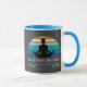 Une tasse à café représentant une personne pratiquant la méditation, avec la phrase "Échapper à la routine" centrée autour de l'image. Le design suggère une échappatoire paisible des stress quotidiens grâce à la pleine conscience et à la paix intérieure.