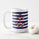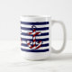 Cette tasse de café est chique et à la mode avec la marine et les ancres rayées de rayure et rouges et blanches blanches. Ajoutez votre nom pour personnaliser si désiré.