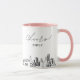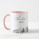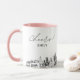 Tasse de café pour mariage à Omaha. Le design présente un croquis époustouflant de l'horizon avec la possibilité de personnaliser avec votre nom ou les noms de vos demoiselles d'honneur, invités ou autres. Mettez à jour facilement la taille et la couleur de la tasse à votre goût.