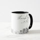 Tasse de café avec vue moderne sur la skyline de San Antonio, cadeau de faveur avec écriture "merci". Le design présente un croquis époustouflant avec la possibilité de personnaliser vos noms et votre emplacement exact. Entrez dans l'outil de conception Zazzle pour des personnalisations supplémentaires.