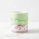 Cette jolie tasse à motifs aquarelle présente un motif à pois vert et blanc avec une bordure de fleurs et de libellules. Personnalisez cette tasse avec votre propre texte ou achetez-la comme indiqué avec "Meilleure maman"