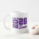 La tasse en céramique pour senior est présentée dans un design de couleur violette et blanche.