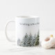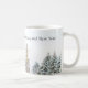 Cette tasse de la forêt paisible présente les cimes de sapins couverts de neige et le texte "Je vous souhaite des fêtes paisibles et une Bonne Année". Achetez cette tasse telle quelle ou personnalisez le texte en ajoutant vos propres mots. Cette tasse à café ferait un cadeau de Noël attentionné.