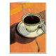 Illustration vintage de boissons chaudes avec une image représentant une tasse de café rétro sur une nappe orange.