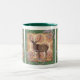Voici une tasse de vacances avec une fusée masculine. Une silhouette d'un cerf commun de mâle se mélange dans un bronzage, flocon de neige comme le motif, tous les deux portés sur un arrière - plan vert. Les accents argentés ornent les coins, donnant un effet soufflé par vent à l'image entière. Sure à svp.