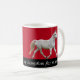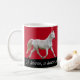 Un cheval blanc caracole autour de cette tasse de fête. Personnalisez en changeant la citation de Shakespeare et/ou la couleur d'arrière - plan.