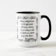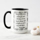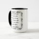 Tasse blanche à deux tons avec cadre orné noir et citation sur le bord et la poignée, "Rien ne peut arrêter l'homme avec la bonne attitude mentale pour atteindre son objectif; rien sur terre ne peut aider l'homme avec la mauvaise attitude mentale…"