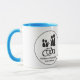 La tasse de CODA a la conception de deux logo'd dans le noir sur une tasse blanche avec la poignée et la jante bleues.