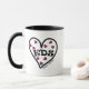 La tasse de coeur d'EDS comportant un grand entendent avec de plus petits coeurs roses décrits dans le noir à l'intérieur du grand coeur avec les lettres EDS à l'intérieur du grand coeur pour le syndrome d'Ehlers-Danlos.