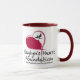 Tasse café rouge/blanc avec le logo de base du coeur de Raylyn. Grande manière de soutenir une grande cause.