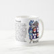 Crête de famille de Bennett comprenant l'histoire et la signification du nom de Bennett sur une tasse en céramique. Pour plus d'information ou avec vos commentaires envoyez-nous chez heraldry505@gmail.com