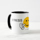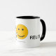 Le doigt moyen avec des mots indiquant la détente fait une tasse de café intéressante.