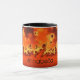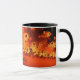 Un soleil orange éjecte des spirales ardentes dans cette illustration de fractale. Il y a l'espace pour un nom au centre de la tasse.