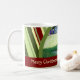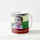 La tasse faite sur commande de photo de grand-maman de Joyeux Noël en rouge, jaune élégant et vert avec le motif de fête de rayures avec le texte et la photo personnalisables, se perfectionnent comme cadeau.