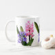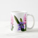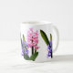 Une image brusquement détaillée des jacinthes pourpres et roses.