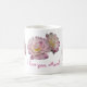 Cette belle tasse du jour de mère éclairera quelqu'un le jour du special. Elle est décorée du beau dahlia rose et blanc de nénuphar appelé "Kelgai Ann".