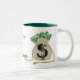 2 sacs d'argent sur cette tasse avec les mots de noir lisant "me montrent juste l'argent" imprimé entre les sacs. Vert-foncé à l'intérieur de la tasse