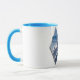 Tasse de bleu de poudre de Kool de ski faite avec de doubles diamants, neige et montagnes, et crâne et cieux au centre.