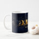 Un rituel matinal aussi beau que le ciel nocturne. Cette magnifique tasse de phase lunaire céleste présente le cycle lunaire complet qui s'enroule tout autour - de la nouvelle lune au croissant de lune croissant, de la pleine lune éclatante et au-delà - sur un fond profond de marine de minuit avec des florales blanches délicates et des étoiles dorées éparpillées.