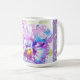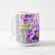 Tasse de Latte florale Iris violet peinte à la main. Un glorieux design floral à l'aquarelle. Conçu à partir de mes peintures originales à l'aquarelle, que j'ai peintes dans mon propre jardin de fleurs.