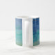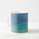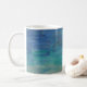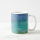 Appréciez une tasse de café de cuisson à la vapeur avec les couleurs de l'océan dans vous main.