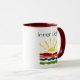 Une tasse de lumière intérieure de quaker avec un lever de soleil d'aquarelle au-dessus d'un océan d'aquarelle. Vous pouvez customiser ces tasses n'importe quelle manière que vous voulez. Mettez même votre propre citation préférée de quaker là-dessus.