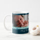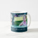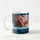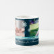 La tasse faite sur commande de photo de maman de Joyeux Noël aux nuances élégantes du bleu turquoise et la turquoise dans un motif sensible de flocon de neige avec le texte et la photo personnalisables, se perfectionnent comme cadeau.