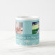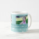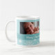 La tasse faite sur commande de photo de maman de Joyeux Noël aux nuances élégantes de bleu, blanc turquoises, et la turquoise dans un motif sensible de flocon de neige avec le texte et la photo personnalisables, se perfectionnent comme cadeau.