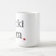 Tasse blanche avec le texte noir et un petit coeur rouge