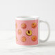 Tasse avec la conception gaie de dessin de pêche. Arrière - plan rose. Cette tasse de café avec 17 dessins originaux différents de pêche éclairera votre matin et après-midi. Fait un grand cadeau pour vous-même ou d'autres pour n'importe quelle occasion.