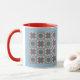 Cette jolie tasse de café comporte un échantillonneur d'étoile appelé l'étoile de l'Ohio sur un arrière - plan bleu doux et est des deux côtés de la tasse. La lèvre et la poignée a des couleurs d'accent de rouge riche là-dessus. Il fait un cadeau gentil pour n'importe qui en Ohio ou a des racines de famille de l'Ohio.