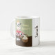 Une tasse de Pâques amusante avec une vache de dessin animé peignant des oeufs de Pâques . Personnalisez-la avec un nom .