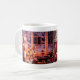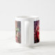 Une tasse avec deux images une avec Père Noël et un elfe faisant des jouets et une avec le chant de Père Noël.