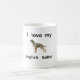 Cette tasse contient l'amour des mots I mon poseur anglais avec une image d'un poseur d'Engish au centre. Ce fait partie d'une série de tasses conçues pour aider des personnes à exprimer leur amour pour leur chien