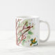 Célébrez la beauté du printemps avec cette tasse joyeuse qui présente deux illustrations originales de style aquarelle de Romi. Un côté capture une scène confortable de jour de pluie avec une silhouette en manteau brillant marchant sous un parapluie, tandis que l'autre montre un petit oiseau mignon perché parmi des feuilles vertes fraîches.