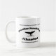 La tasse de café avec le logo d'une de sociétés premières de voyage d'observation et d'aventure de la baleine de l'Alaska a imprimé là-dessus.