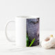 Bouddha en pierre, serein parmi le feuille vert, tasse blanche classique. Vous pouvez également obtenir cette tasse dans d'autres styles tels que le banlieusard ou les tasses givrées. Belle image de Bouddha grande pour des pensées heureuses, la tranquilité, le bon karma, la méditation, le calme et l'harmonie.