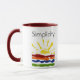 Une tasse de simplicité de quaker avec un lever de soleil d'aquarelle au-dessus d'un océan d'aquarelle.