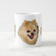 Les amants d'animal familier apprécieront ce petit chien pomeranian sur cette tasse enorme intéressante. Vous pouvez remettre à la côte les images ou les déplacer autour.