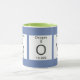 Appréciez une tasse de café ou de thé en ce Cr bleu/vert élégant d'orthographe de tasse O W avec la table périodique.