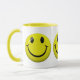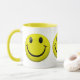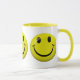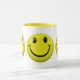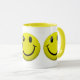 Trois brillant, enrouler heureux de visages de bouton de visage autour de cette tasse fraîche. Mettez dessus un visage heureux avec cette tasse heureuse lumineuse, mignonne, drôle ! Donnez un à votre famille et amis pour les rappeler pour mettre dessus un visage heureux ! Grand pour des enfants, des ados, des hommes et des femmes de tous les âges ! Montré est le café blanc ou n'importe quelle tasse de boisson avec l'équilibre jaune. D'autres couleurs sont disponibles.