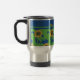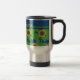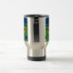 Une tasse lumineuse et attrayante de voyage à customiser, avec un motif des tournesols jaunes d'or sur un arrière - plan bleu profond, d'une sérigraphie par Judy Adamson.